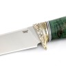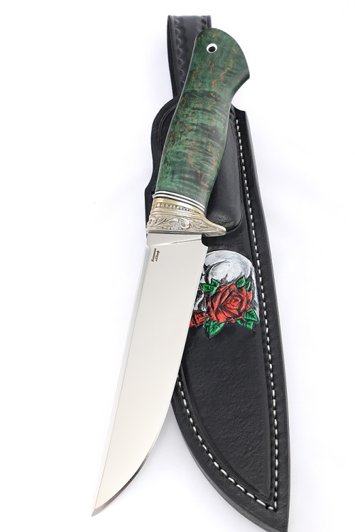 Нож Каюр сталь кованая Х12МФ рукоять мельхиор, карельская береза зеленая ФОРМОВАННЫЕ НОЖНЫ